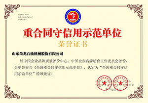 此次榮獲“重合同守信用示範單位”榮譽稱號是公司以誠信求生存的重大體現,為進壹步增強公司的市場競爭力註入了壹針強心劑。堅定了山東墨龍繼續在石油機械領域做大做強的信心,通過進壹步的企業改革升級、砥礪前行,打牢石油機械持續穩定發展的根基,為石油機械行業的誠信、健康發展貢獻綿薄之力。