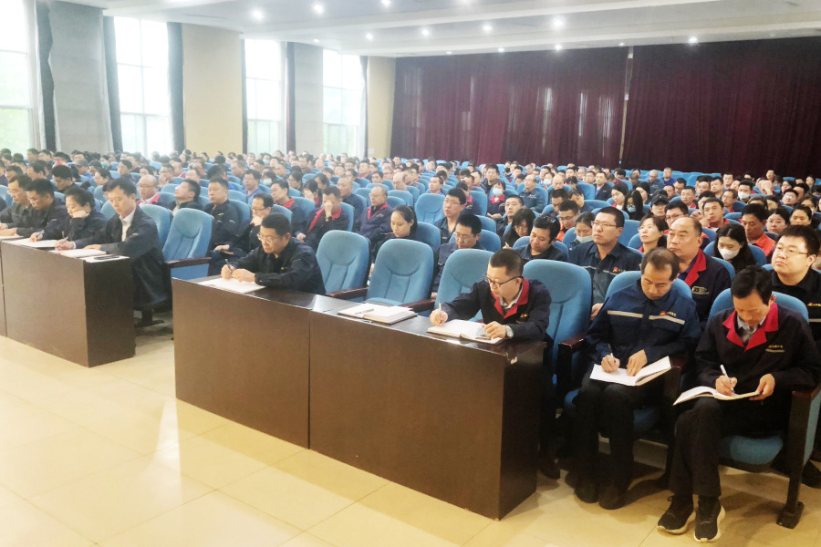 会议由总经理助理鲍墨港同志主持,董事长、总经理韩高贵同志做会议总结并讲话,公司生产、技术、质管、营销等管理人员共计460余人参加会议。